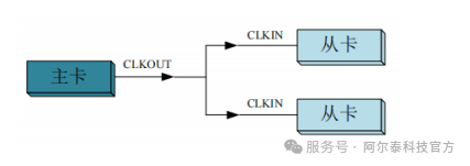 1.將主卡的時鐘輸出信號連接到從卡的時鐘輸入端。